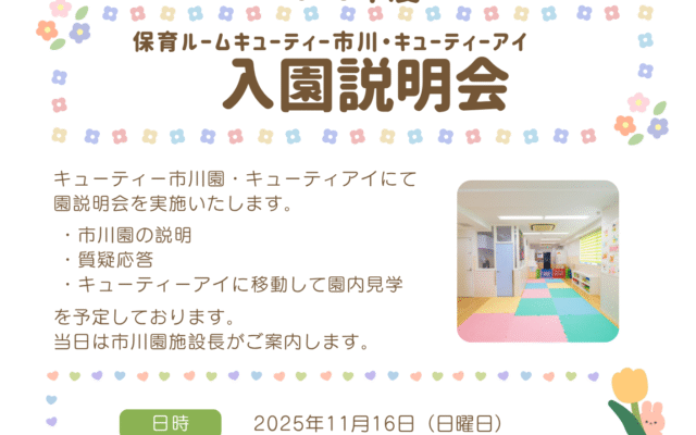 アットホームな保育ルームキューティーに、是非一度遊びにいらしてくださいね!