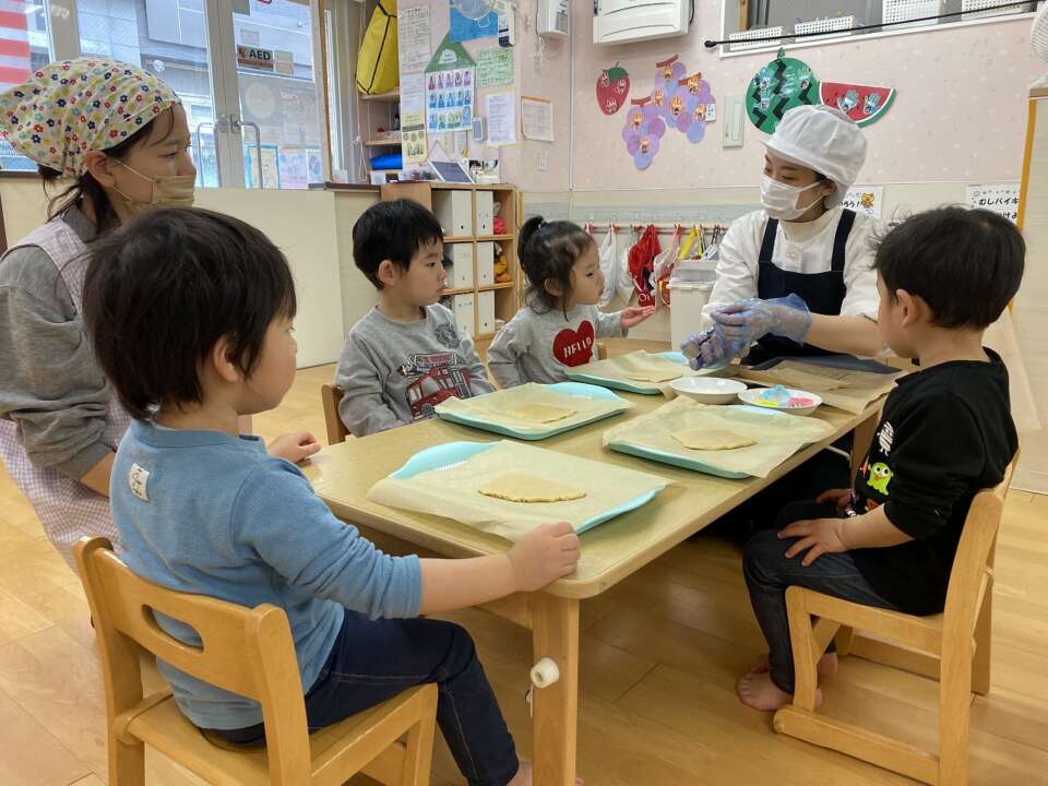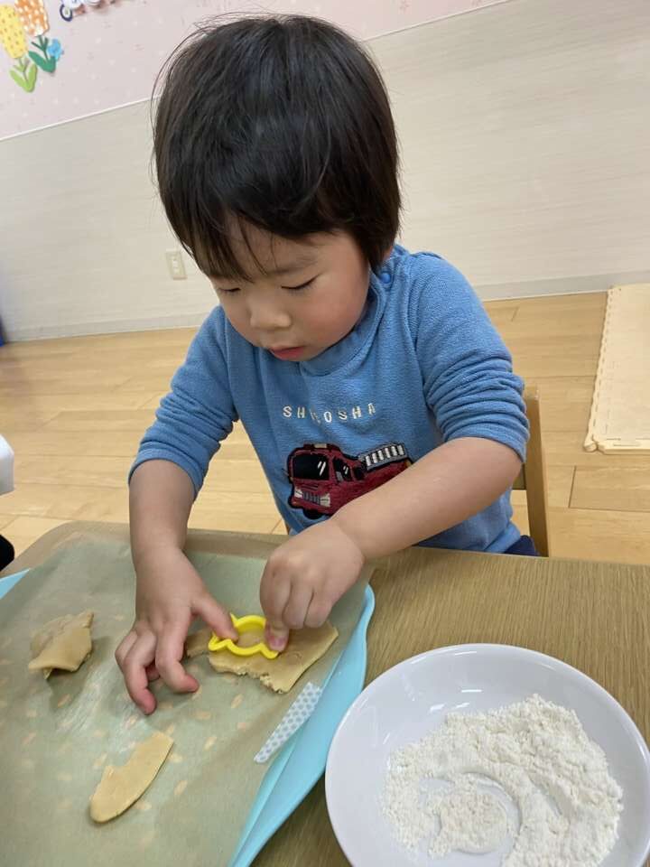 自分たちで生地を伸ばして、好きな型を選んで作りました💛