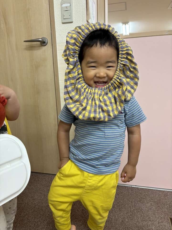 子どもたちは気が付くと頭に何か被っています。