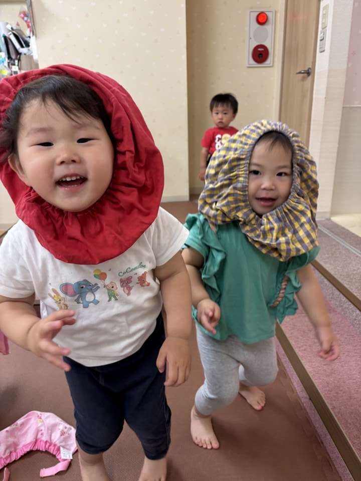 どう使うのか考えた結果、頭にかぶっていたこどもたち(笑)
