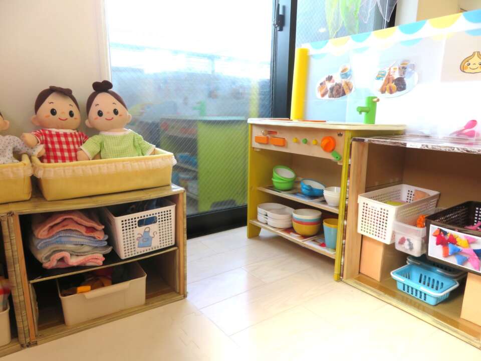 ままごととお世話コーナーは1歳児のスペースです。
