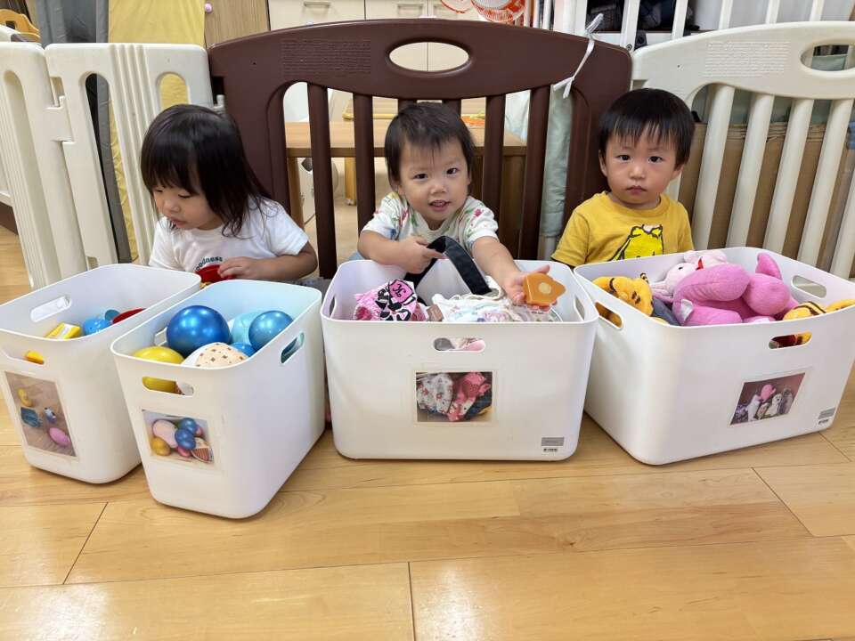 1歳児クラスのお友だち♪お店屋さんごっこかな♪