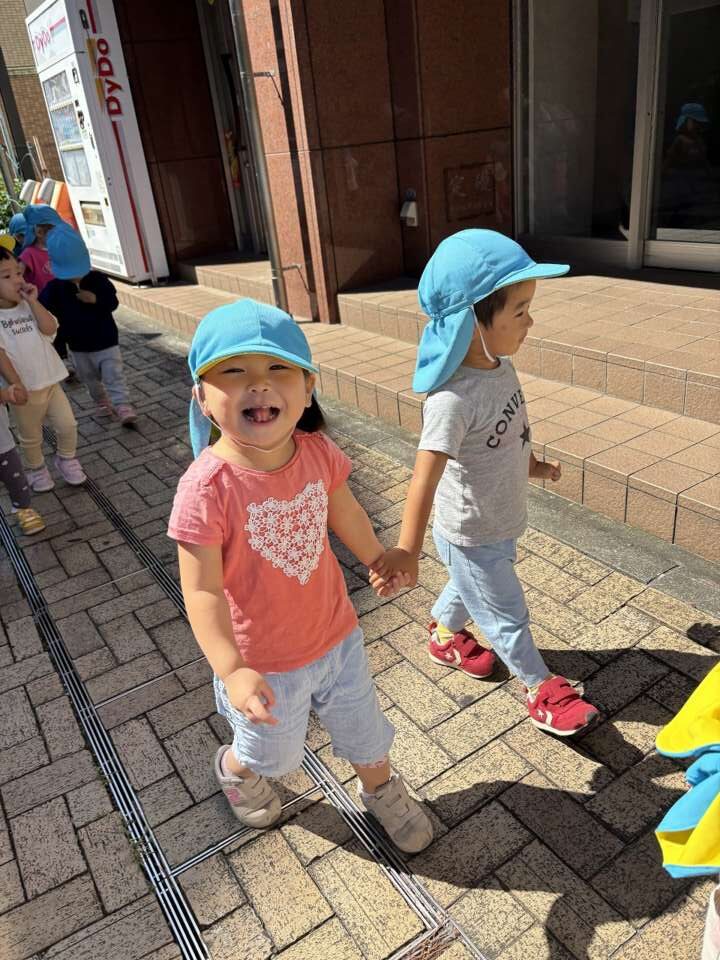 すいか組のお友だち同士で手をつないで歩いて散歩に行くこともできています。