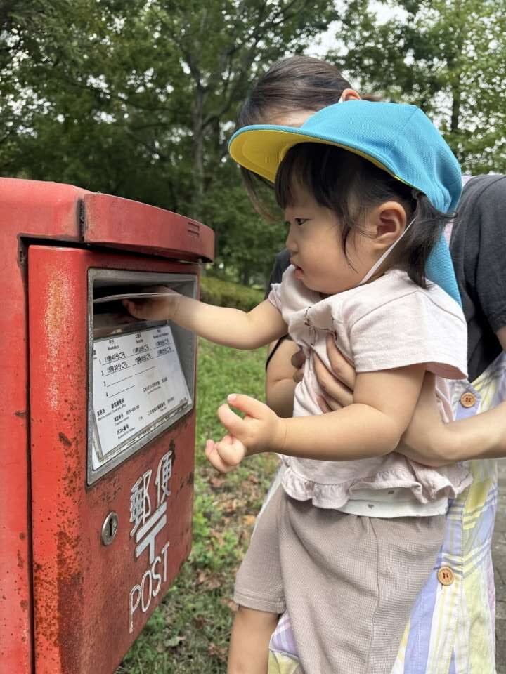 敬老の日のために制作したハガキをポストに投函しに行きました!