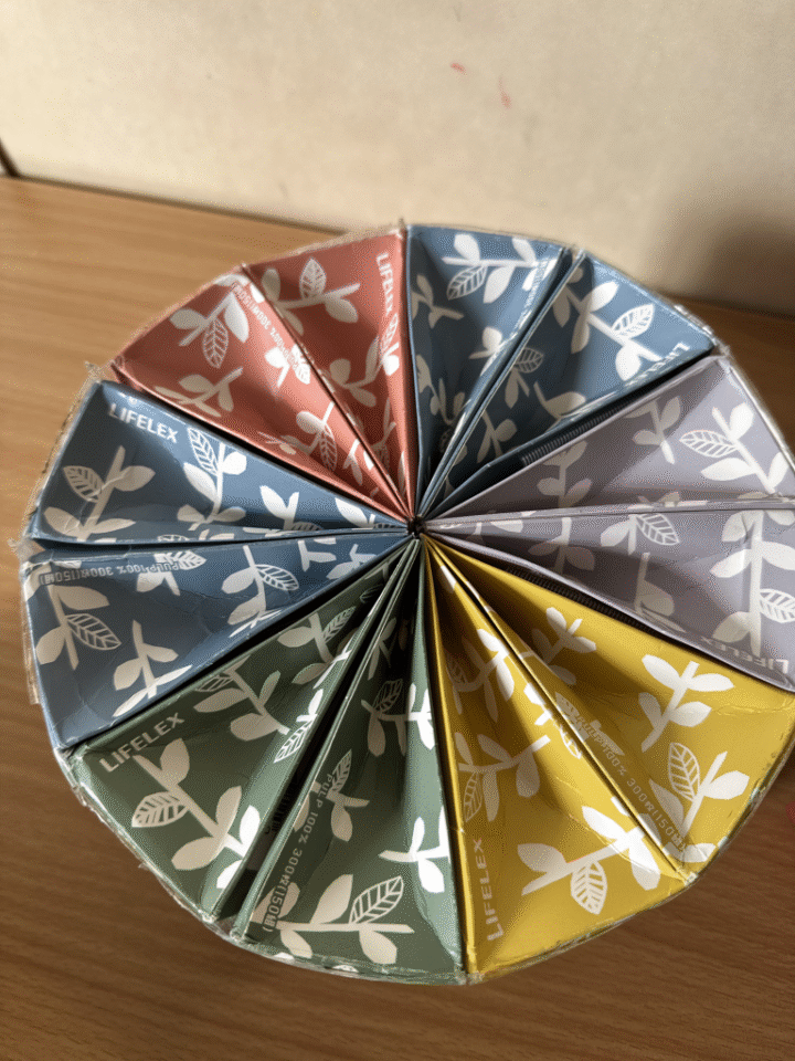 ②丸くなるように6個組み合わせ、崩れないように周囲をテープで止める