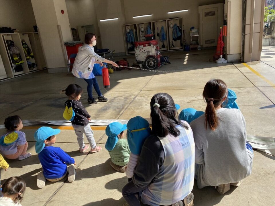 見学した後は、保育士が消防訓練をしました。