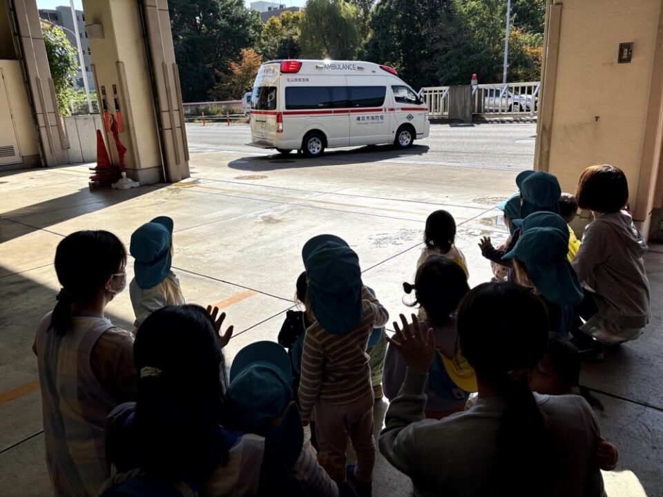 消防署に着いて、救急車と写真撮りましょう!