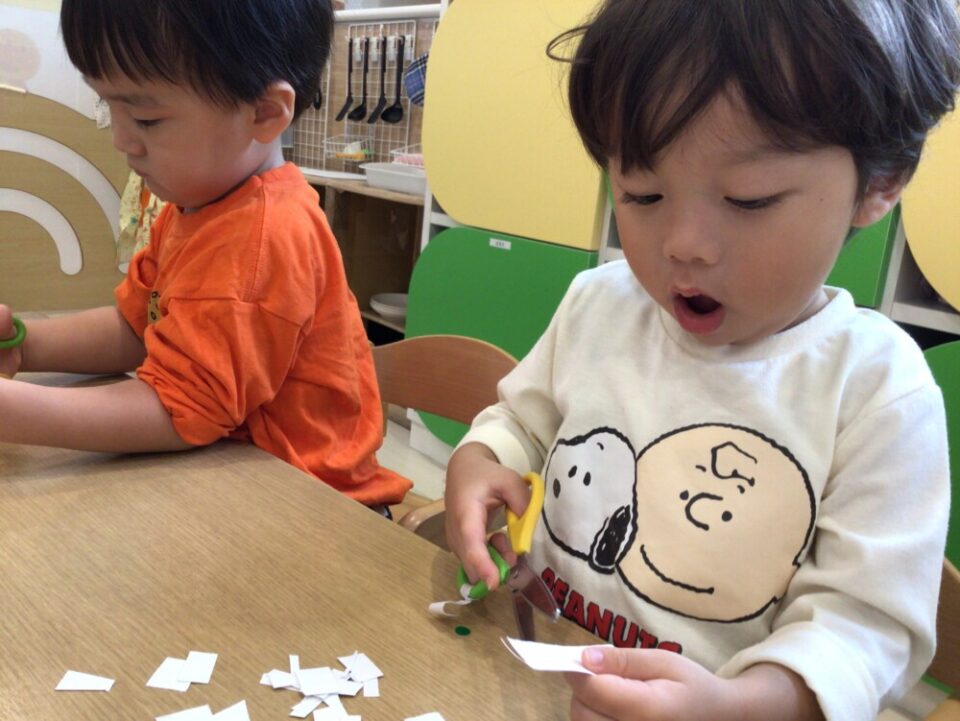 はさみを使う事にも少し慣れた様子の子ども達。