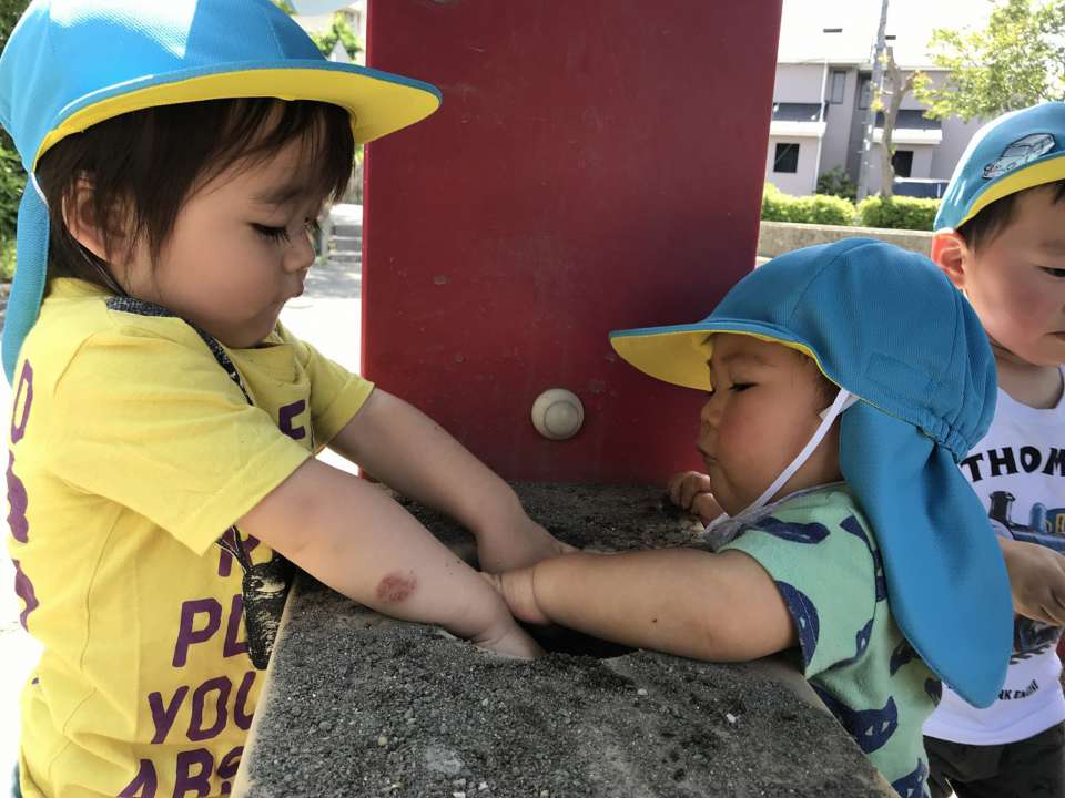 お友だち同士の顔も分かってきて、名前を呼び合ったり興味を示したりしています。
