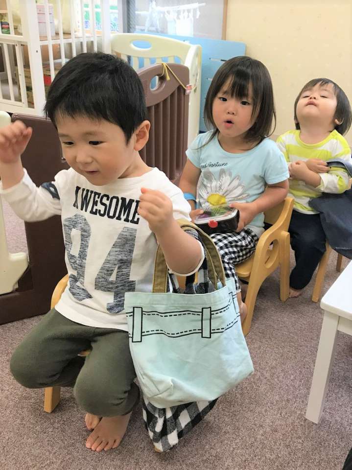 椅子を自分たちで並べていて、バスごっこになりました♪