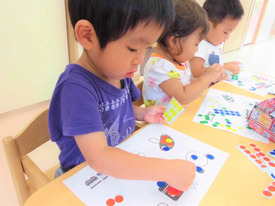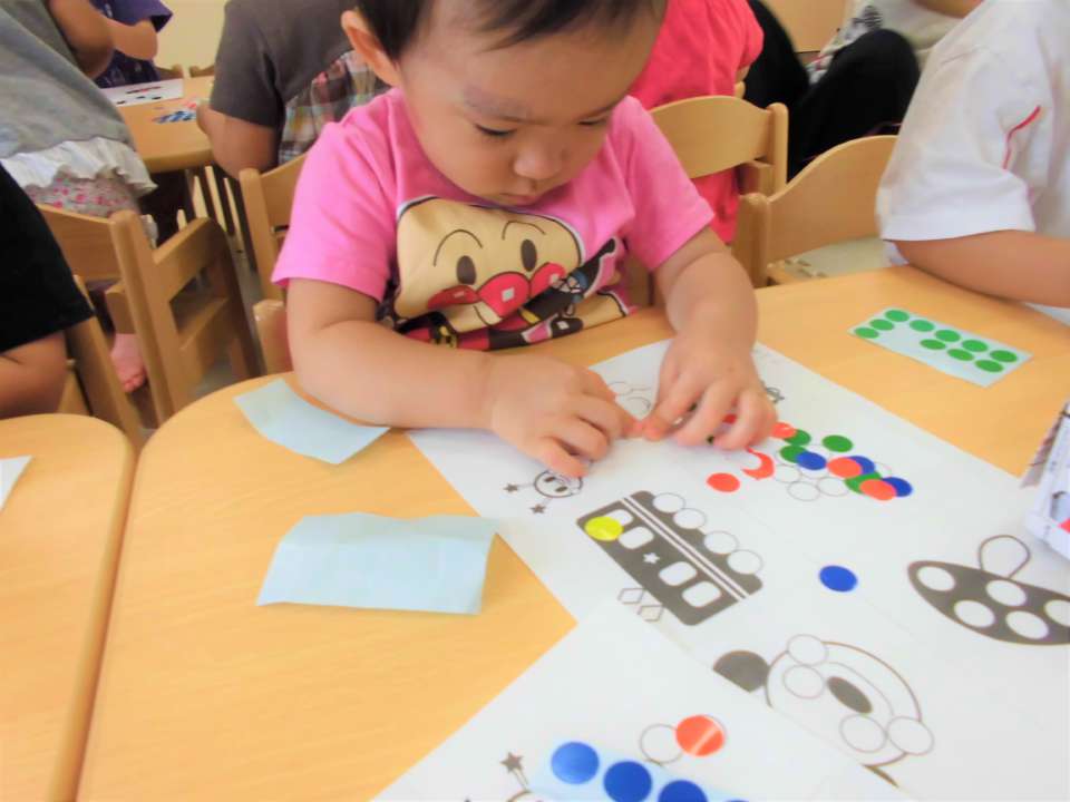 この日はシール貼り🎶みんなで指先あそびを楽しみました😆