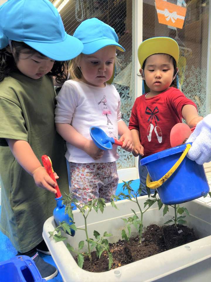 トマトの苗をそっと置いてね~🍅