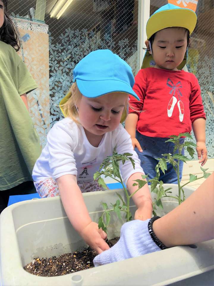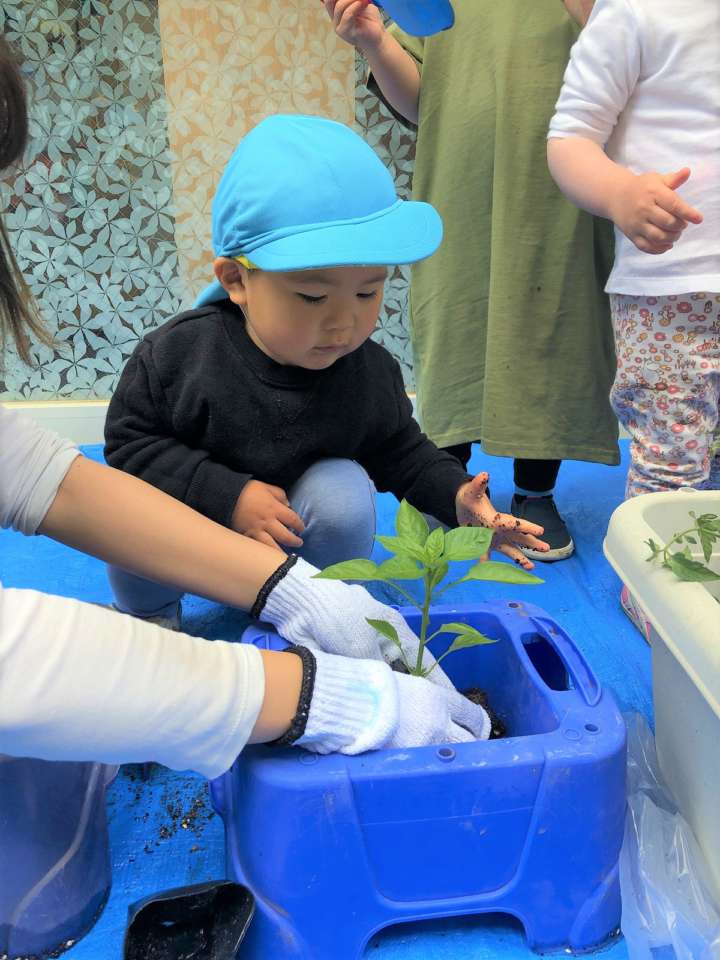 楽しそうに苗植えをする子どもたちでした~☺️
