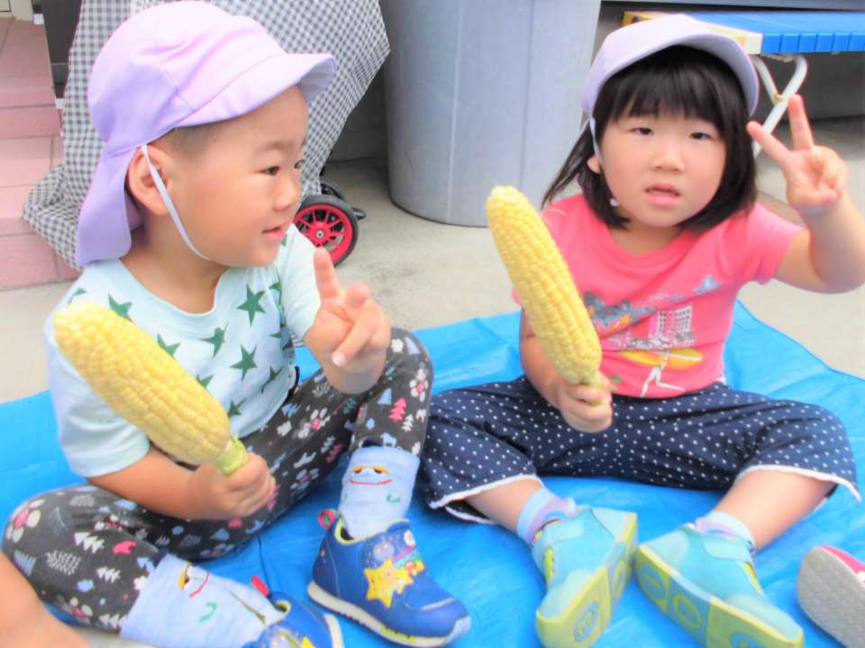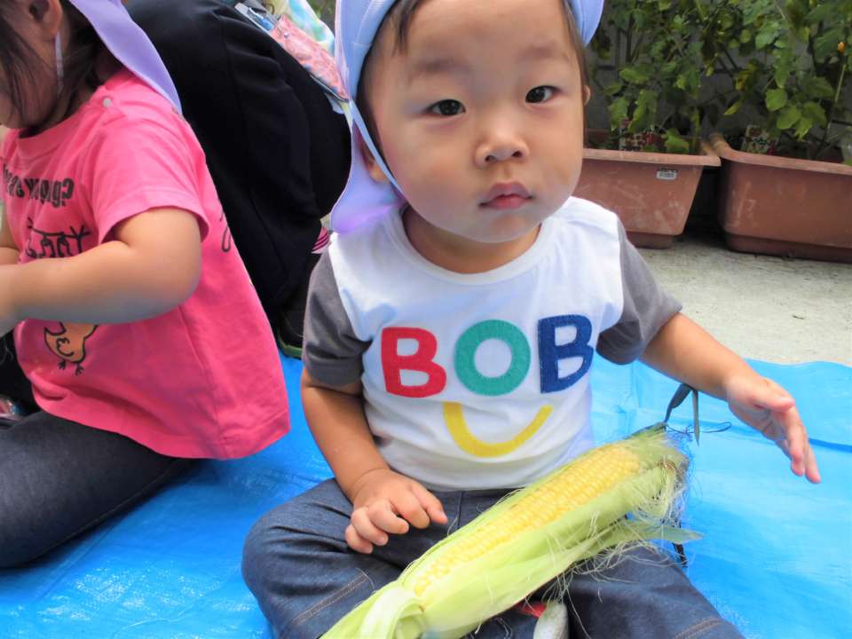 この日はみんなでとうもろこしの皮をむいたり🌽 、お庭のトマトを収穫したりしました🍅