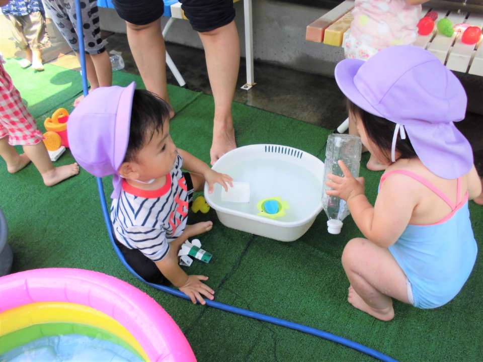 最初は水に消極的だった子も慣れてくるとバシャバシャと水に触れて楽しんでいました😆