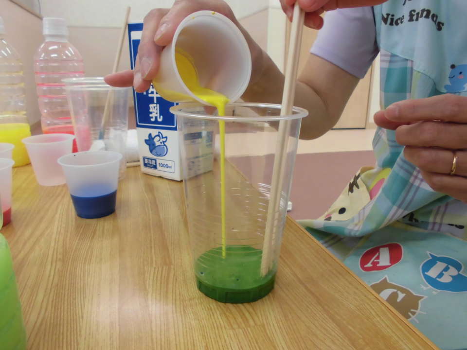 違う色を混ぜていろいろな色の色水ができるのを見せてもらいました✨