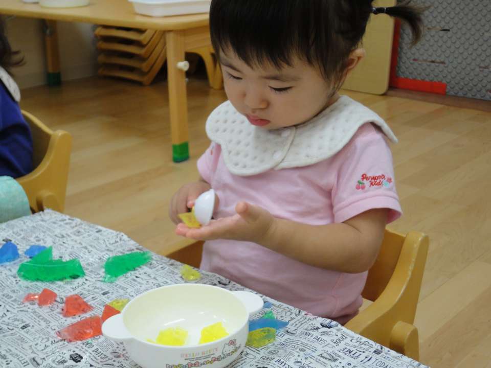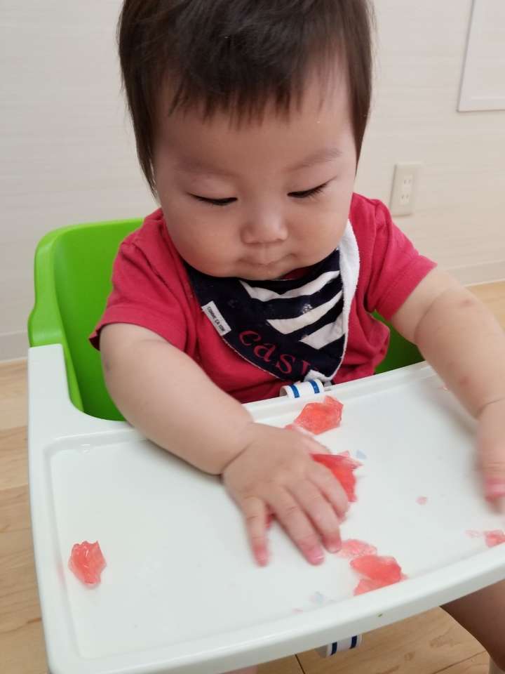 握ってみたり、つぶしてみたり、フォークやスプーンで切ってみたり