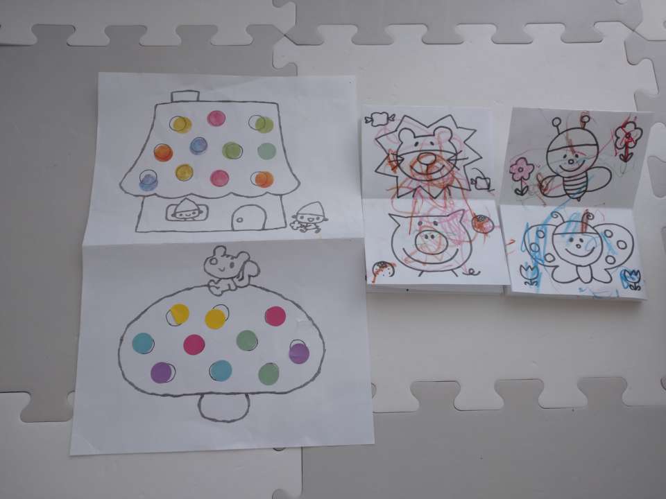 5月製作で予定していたこいのぼり、塗り絵、シール貼り、など