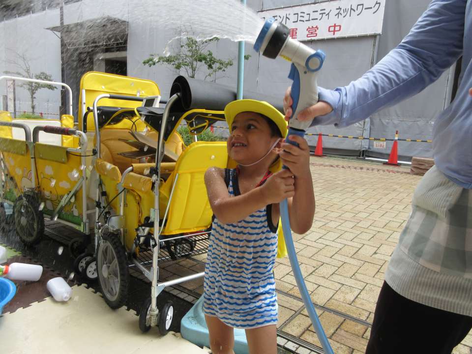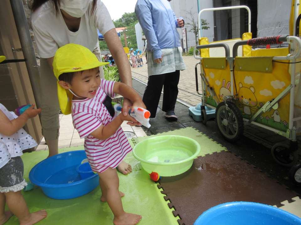 大きなプールには入れないけど大きな水鉄砲とお友達と遊べて