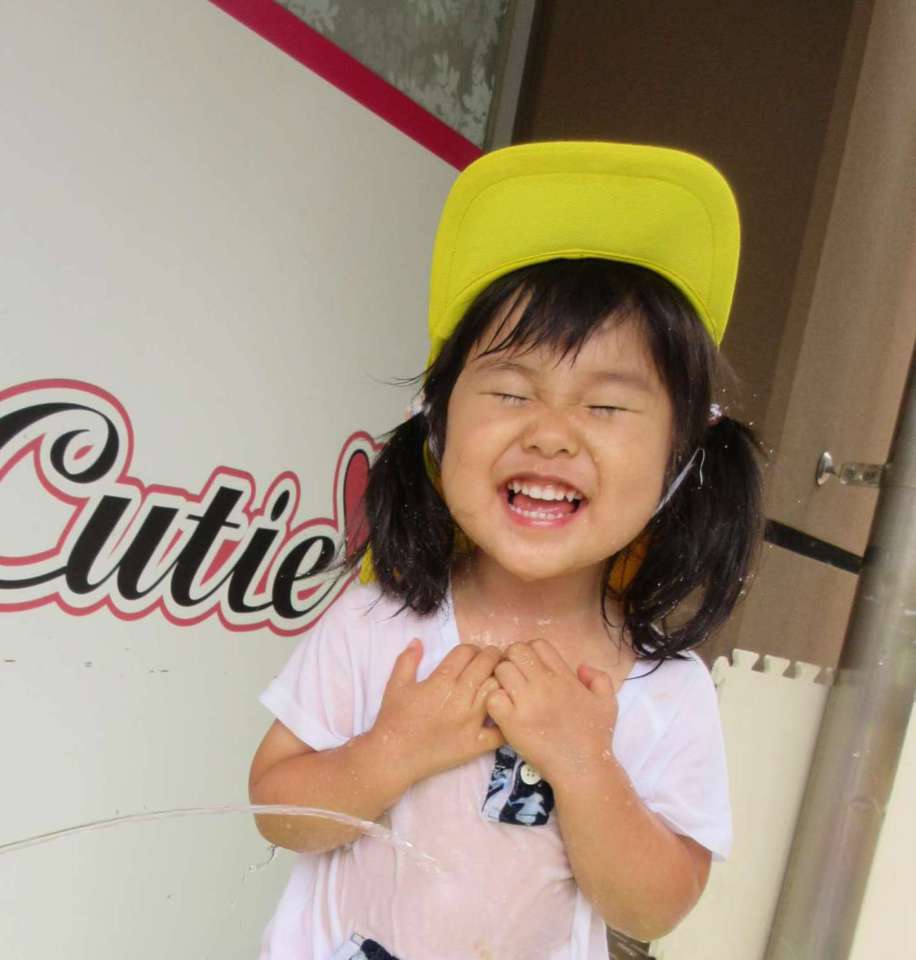 顔に水がかかっても怖くないんだぞ~!
