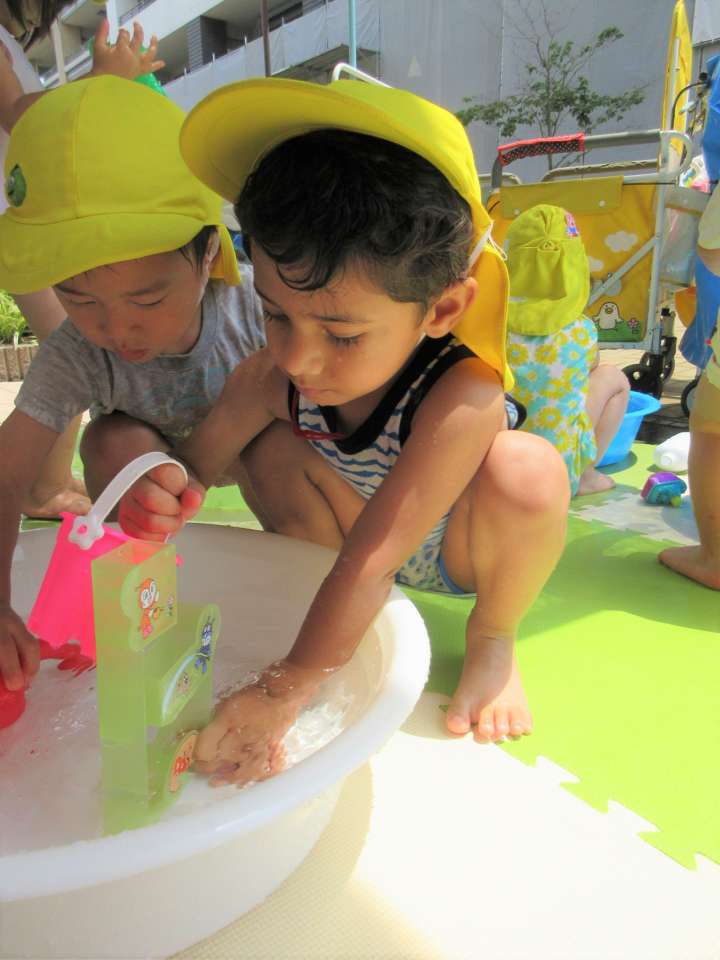 雨の日は室内で過ごし、晴れの日は水遊びがスタートしました☀️