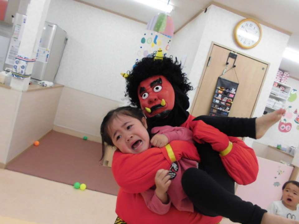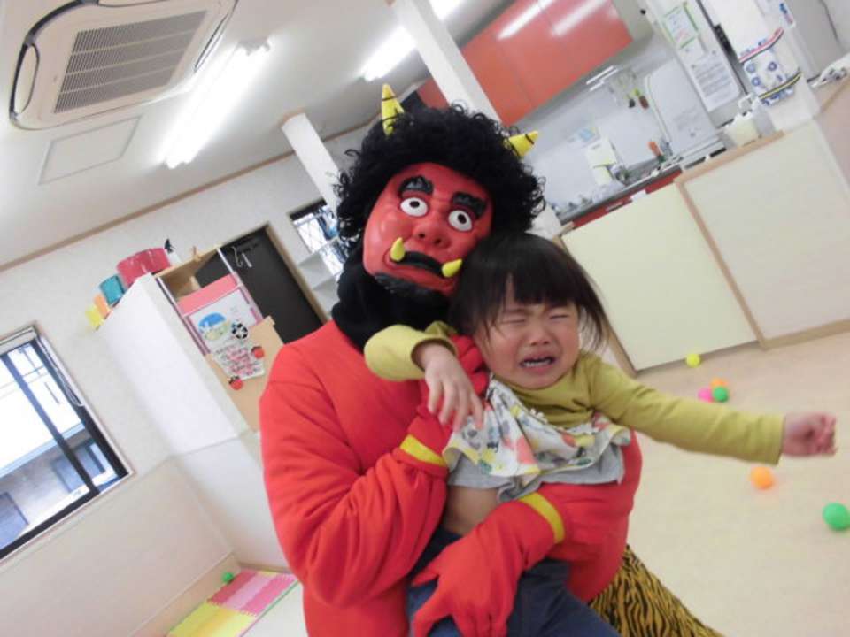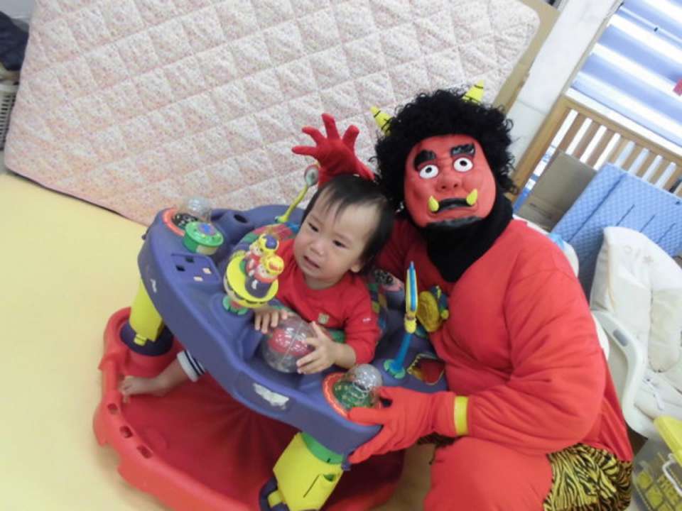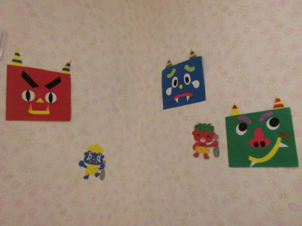 今年の節分は2月2日。124年ぶりだそうです。節分は「みんなが健康で幸せにすごせますように」という意味をこめて悪いものを追い出す日。みんなの中の「泣き虫鬼」や「おこりんぼ鬼」を『おには~そと~』で追い出そう!!