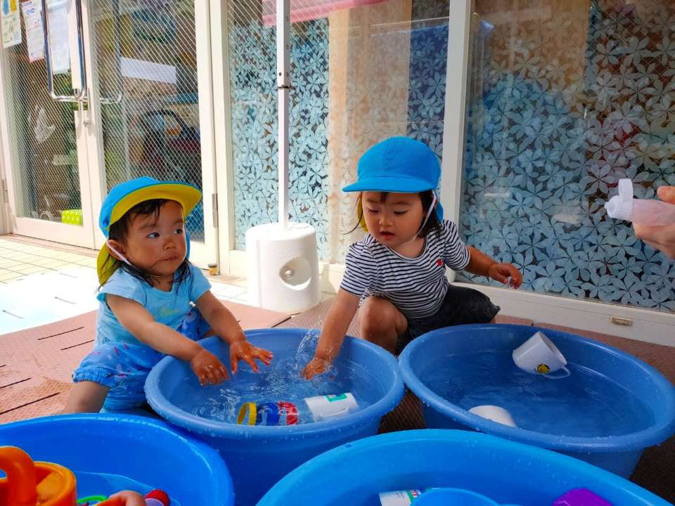 梅雨の長雨でしばらくできませんでしたが、梅雨が明けた今では楽しく水遊びしています♪