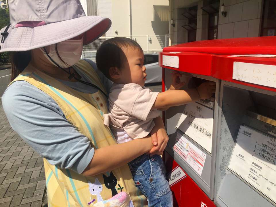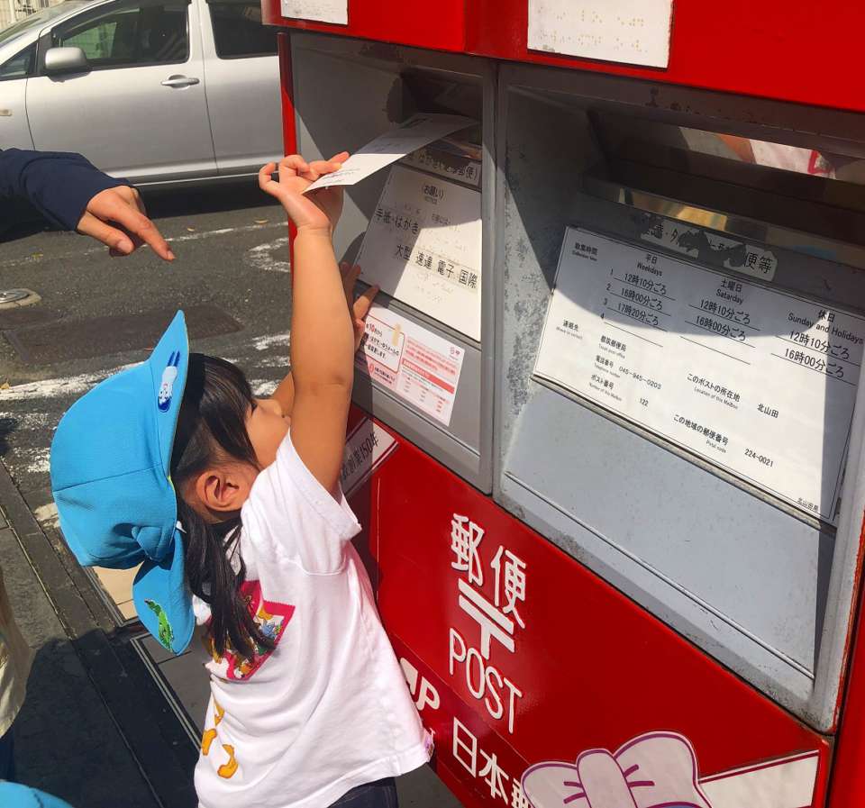 みんなで郵便局へ行き、自分たちでポストに投函📮