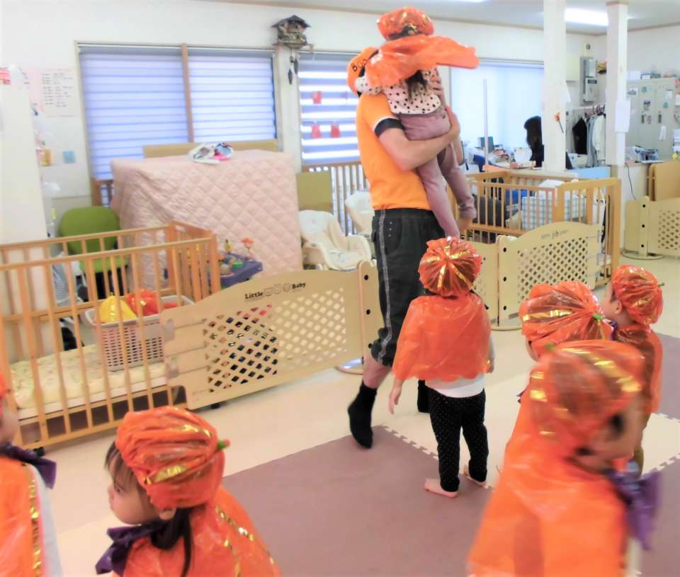 「トリックオアトリート!」最後はコリン先生からお菓子をもらって大喜びでした😋