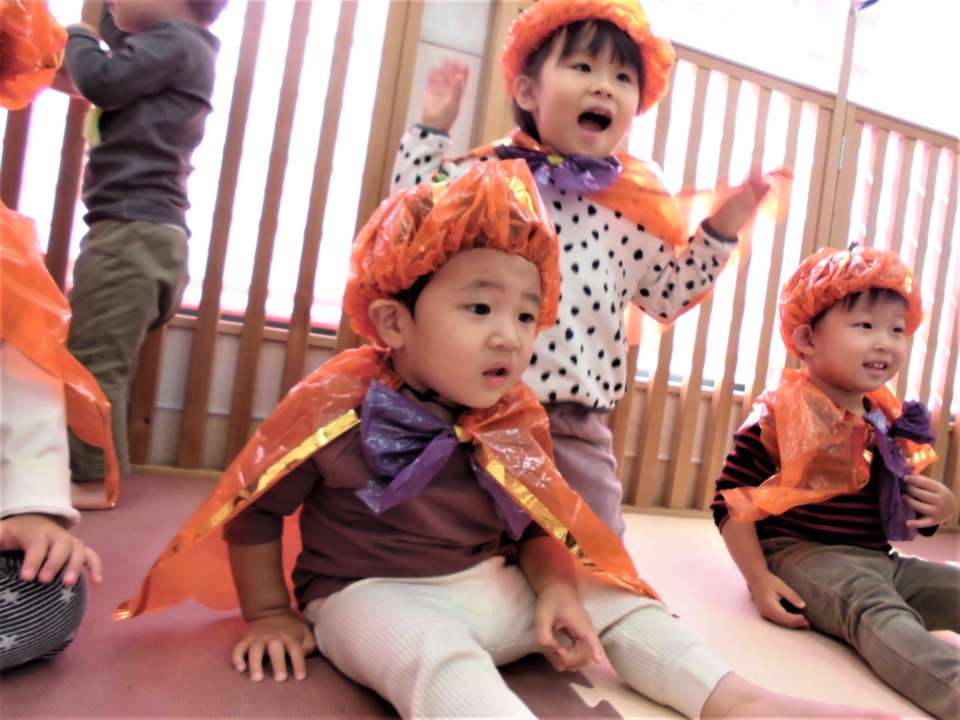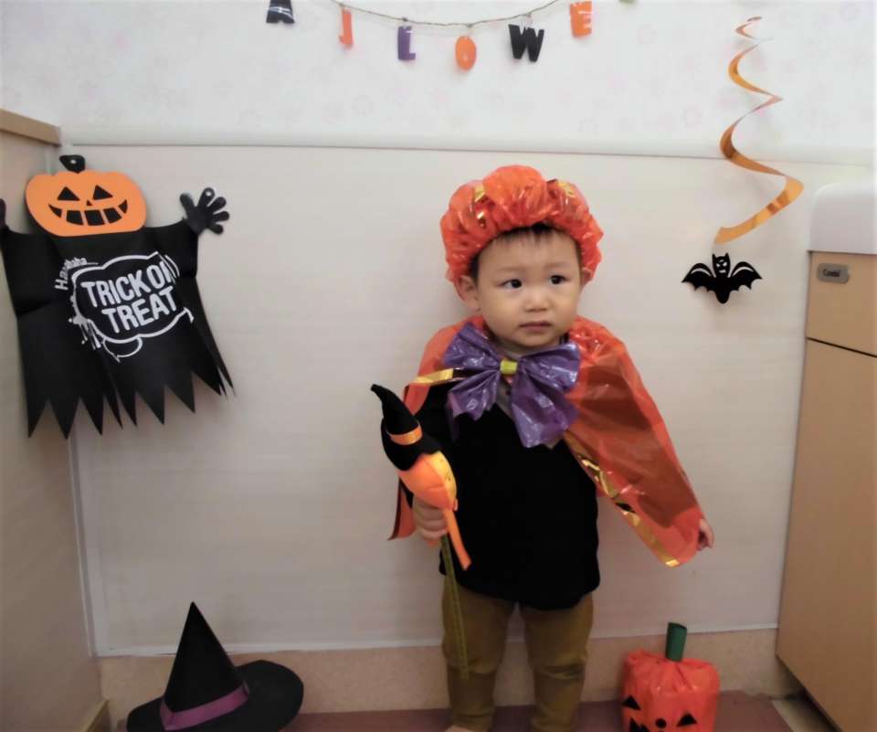 今年はオレンジ色のマントとかぼちゃの帽子でへんし~ん!