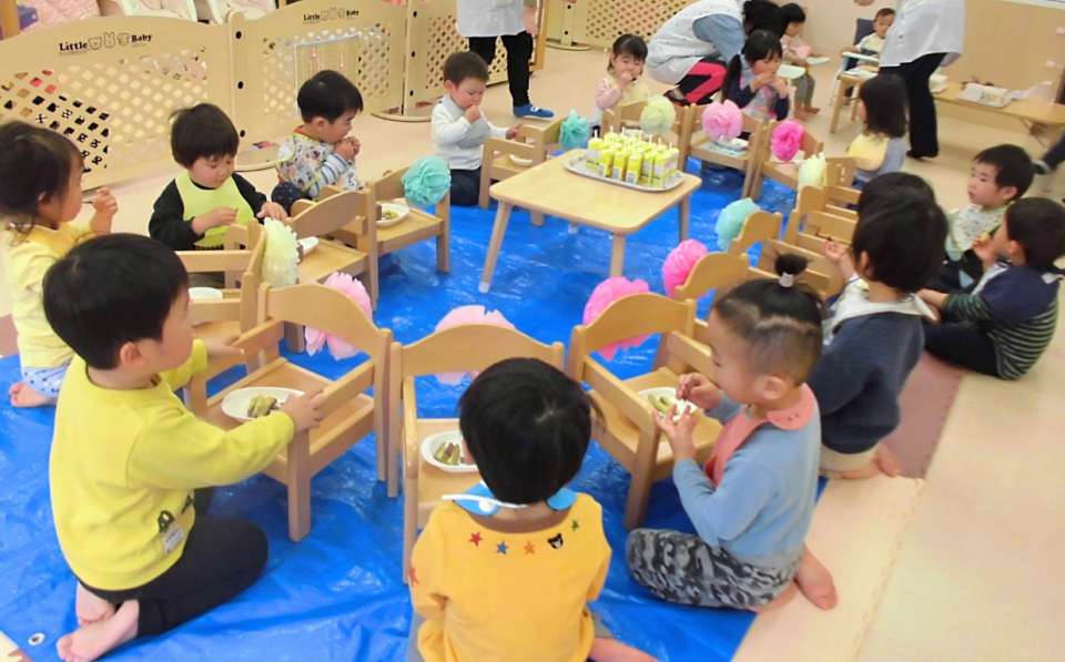 今日は特別にお部屋の真ん中でみんなで輪になっておやつを食べました💞