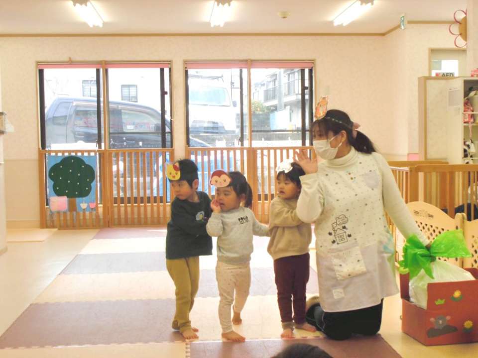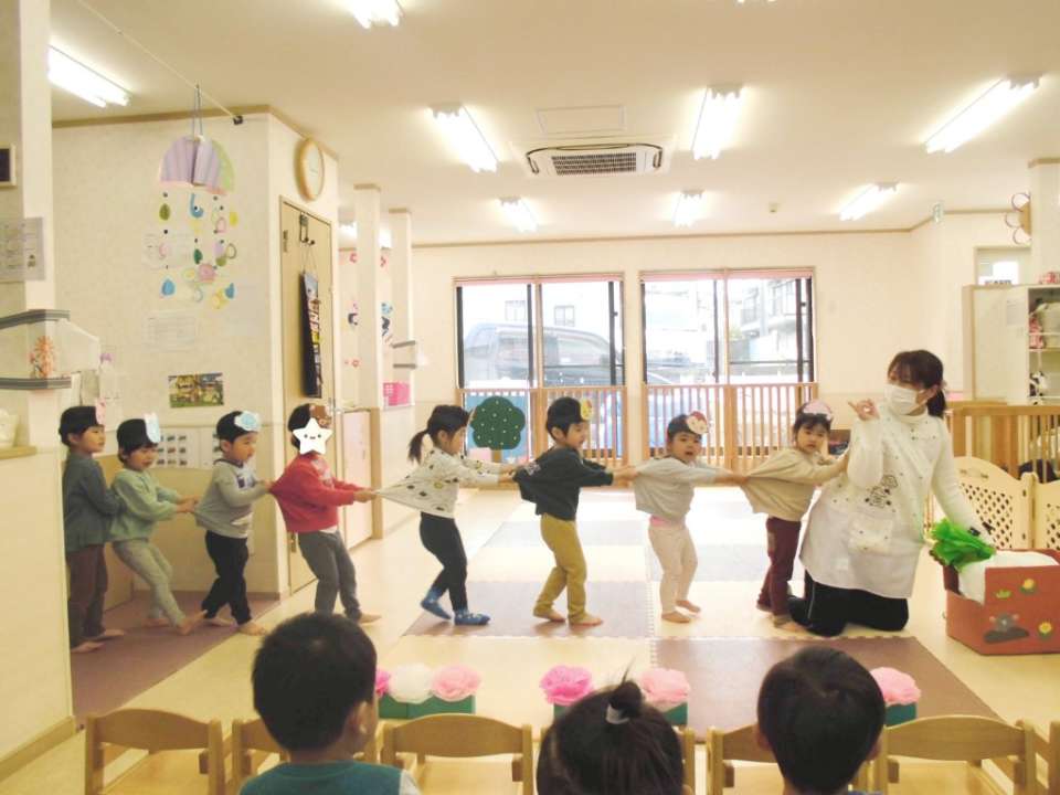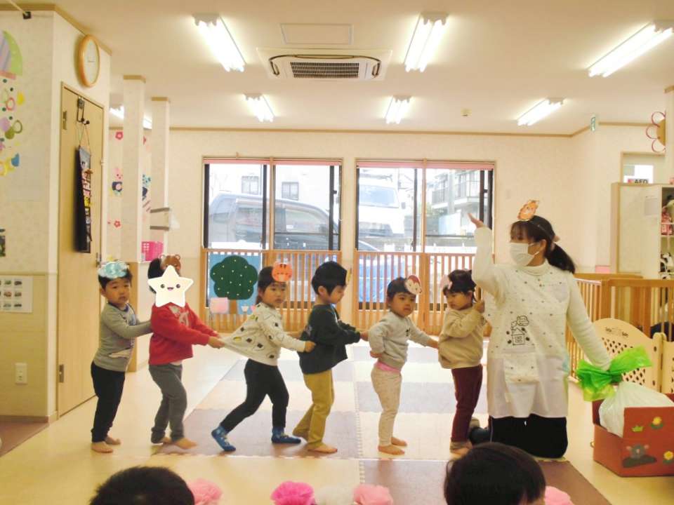 今年は、卒園を迎える2歳児さんたちで「おおきなかぶ」を演じてみんなに見せることにしました🎵