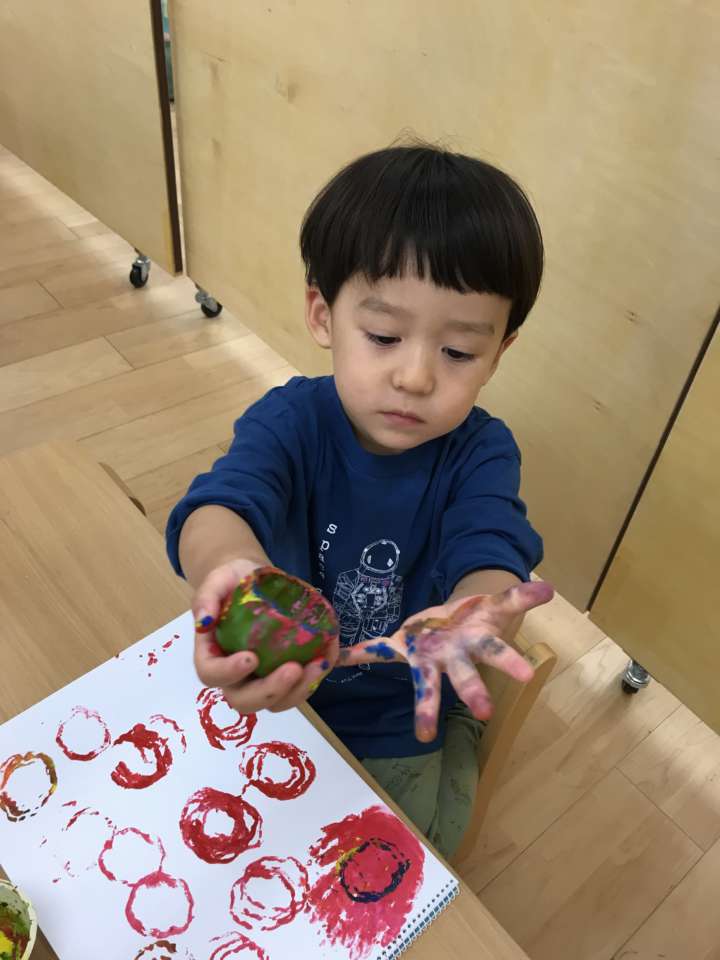 本物のピーマンを使ってピーマンスタンプもして、ピーマンに興味津々な子ども達です😊