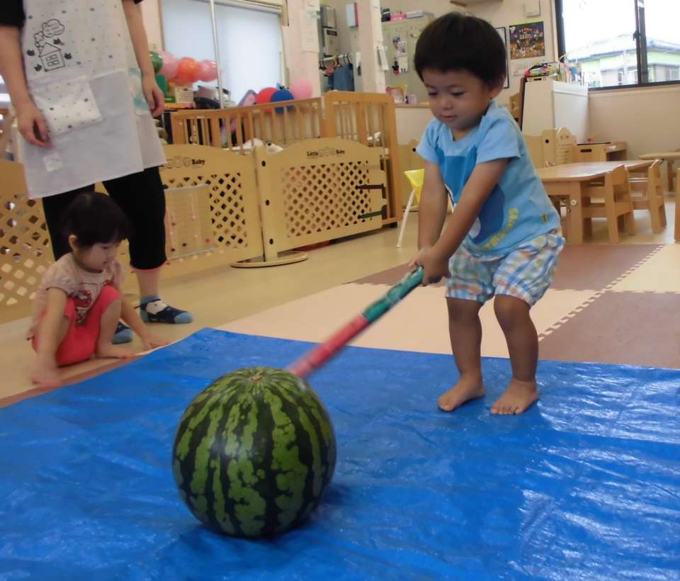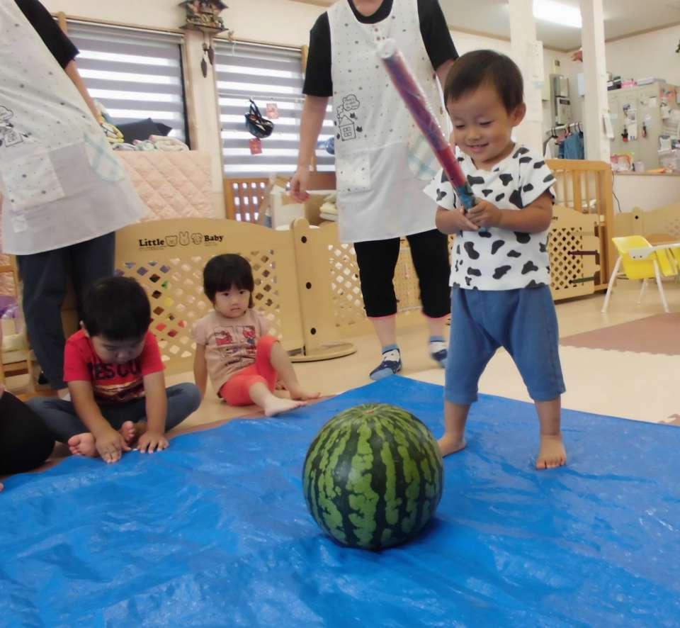 今年は初めて津田沼園でもスイカ割りにチャレンジしました。