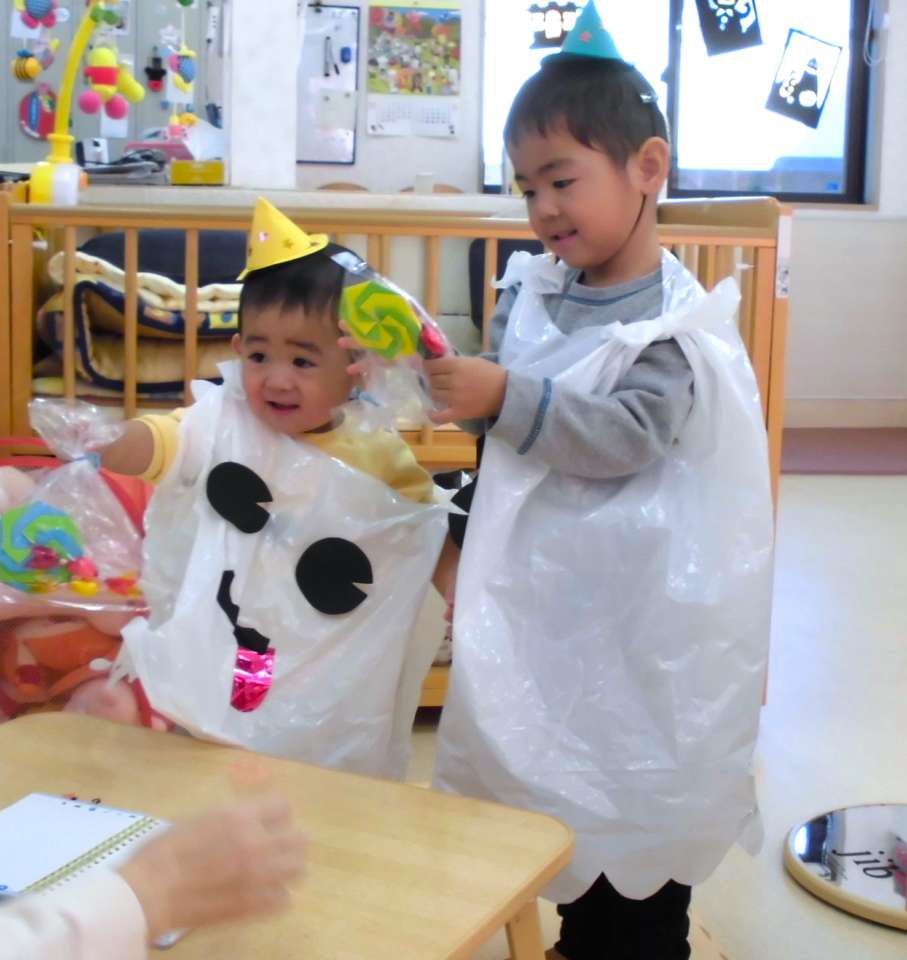 お菓子をもらってとっても嬉しそうなオバケさんたちでした💕👻
