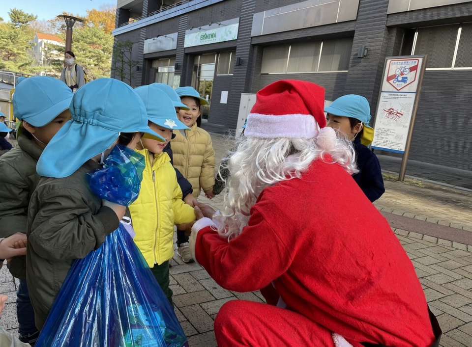 このサンタさんは、連携先(優先入所あり)の都筑ヶ丘幼稚園から遊びにきてくださったサンタです♪