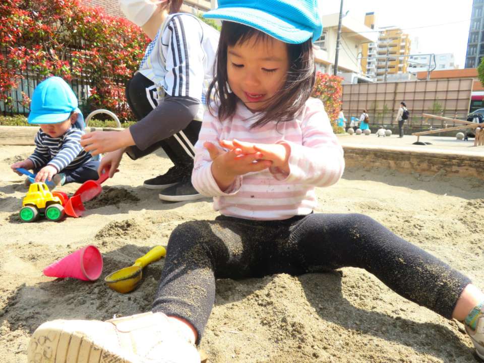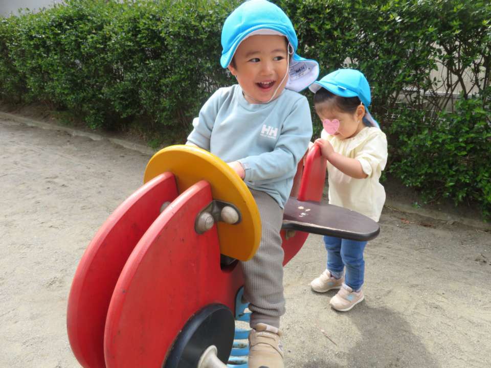 4月に進級したお友だちは、今日も元気いっぱいに公園のスプリング遊具や砂場遊びを楽しんでいます。