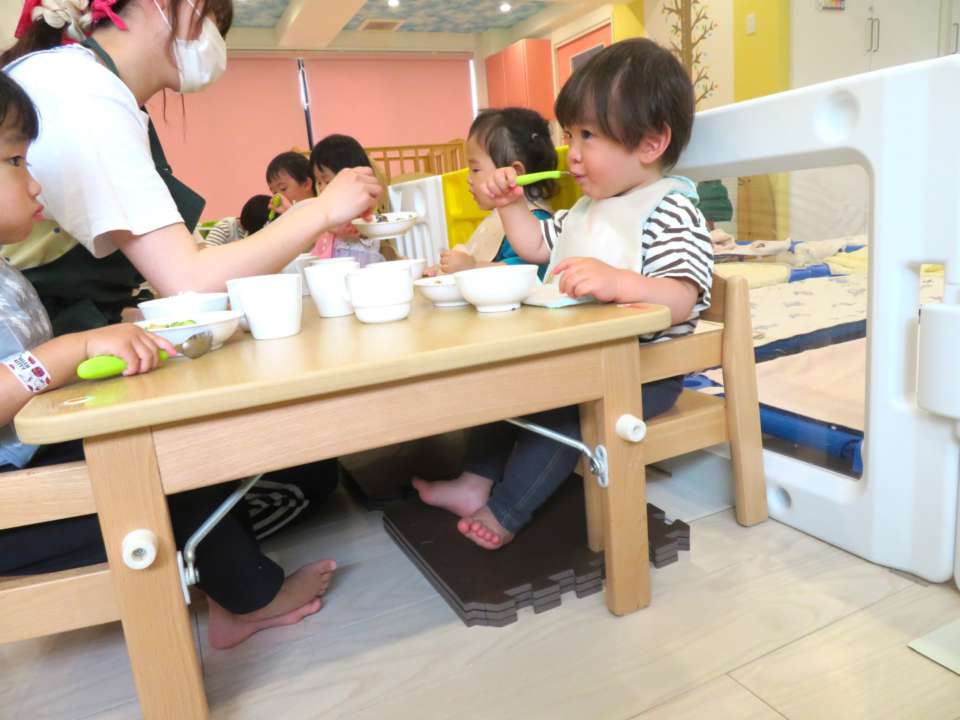 食事中に足を床につけて座ると、踏ん張ることができるので背筋が伸びて「しっかりと噛むことができる」「歯並びが良くなる」姿勢が安定することで「食事中の集中力がアップする」と言われています。