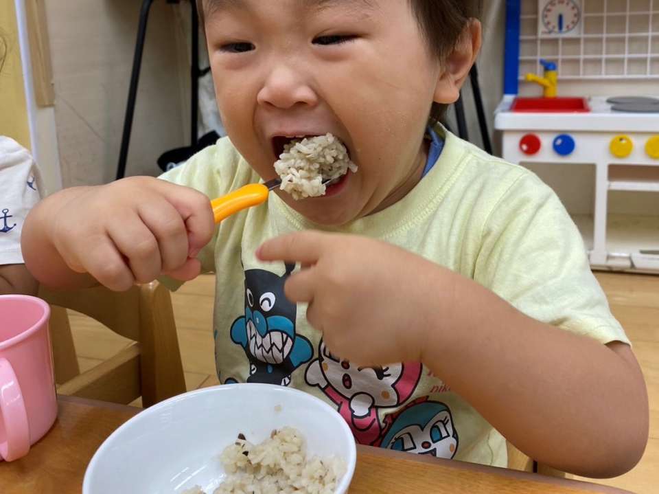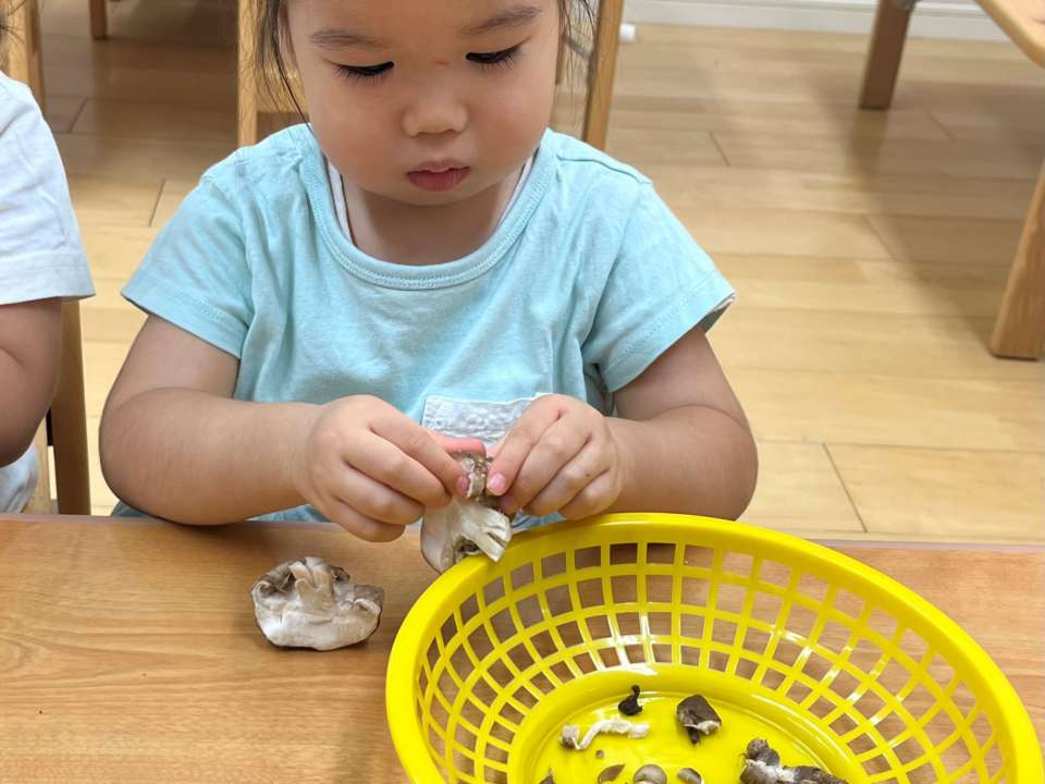 「きのこごはん作ってもらおうね」と話しながら上手にお手伝いしてくれました👏🏼
