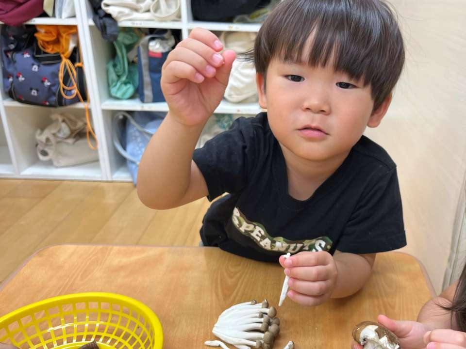 9月・10月は「きのこほぐし」のお手伝いをしてもらっています。