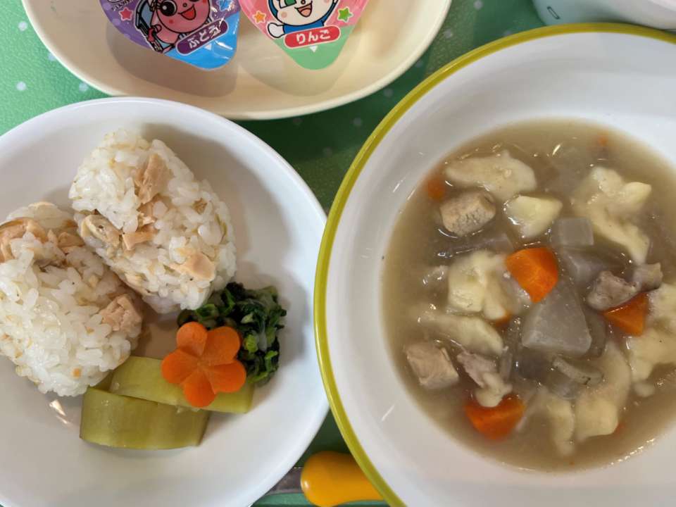 給食ではやわらかいすいとんを入れたお雑煮風の汁物も😊