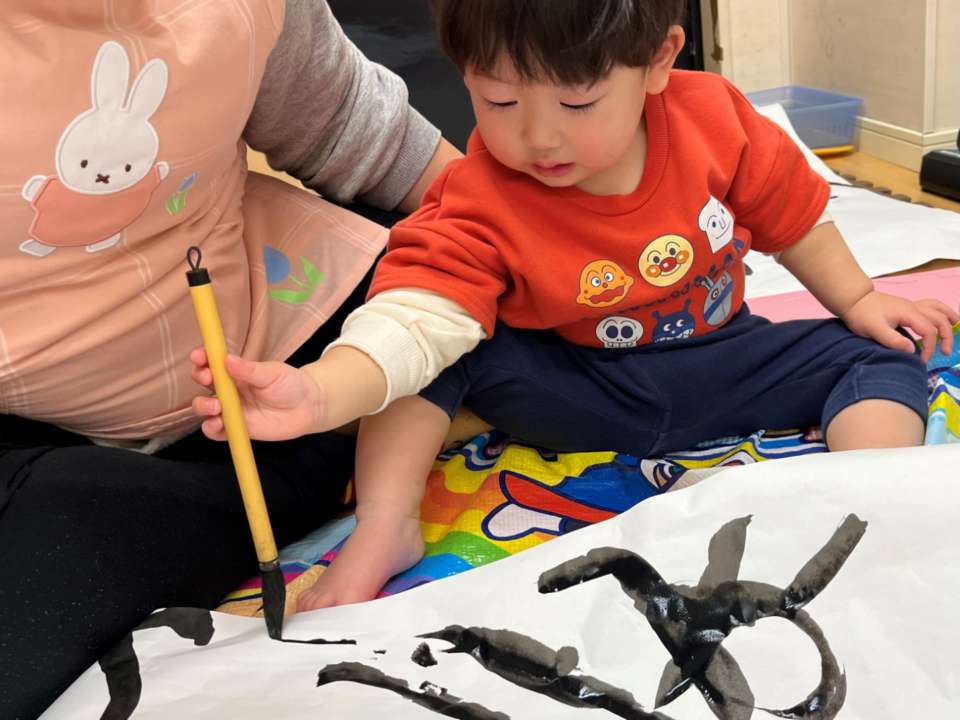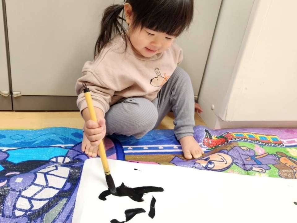 子どもたちにとって筆を持って書くことはちょっと難しいのですが…