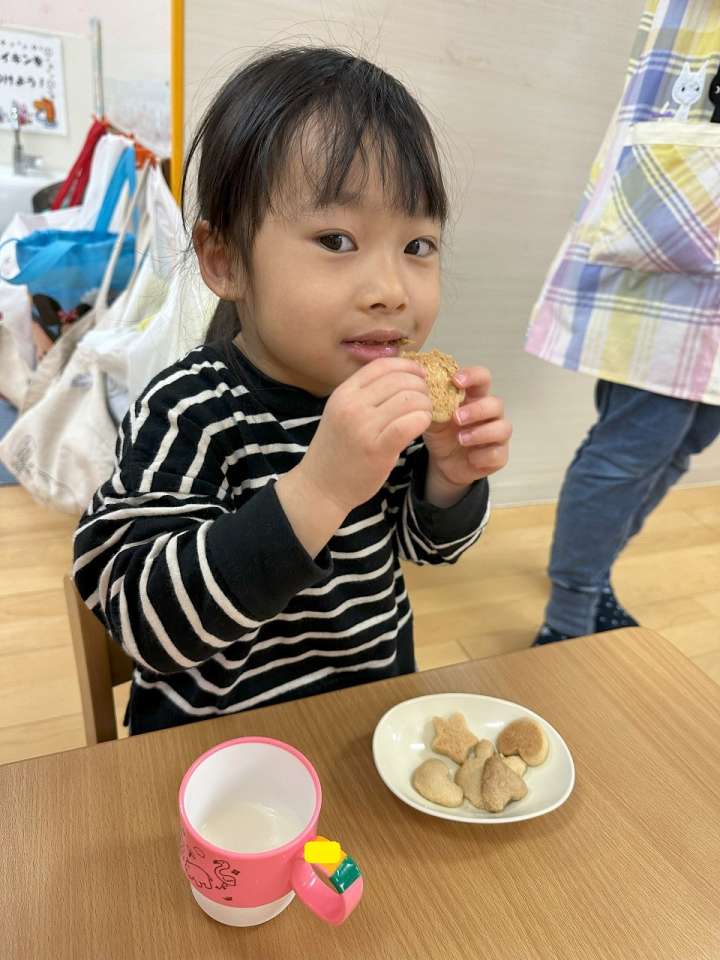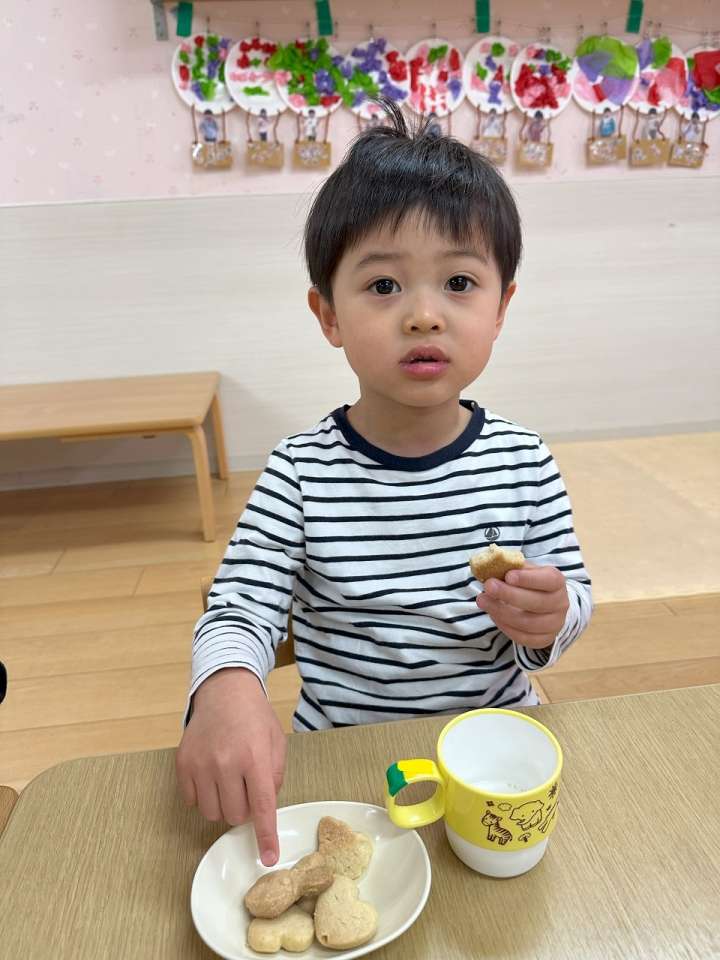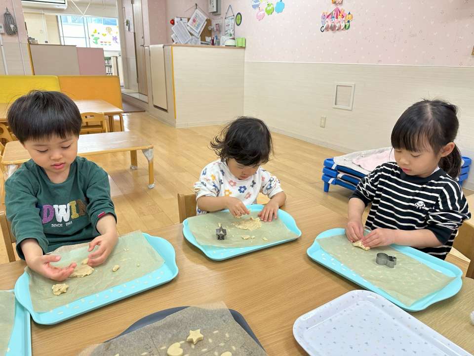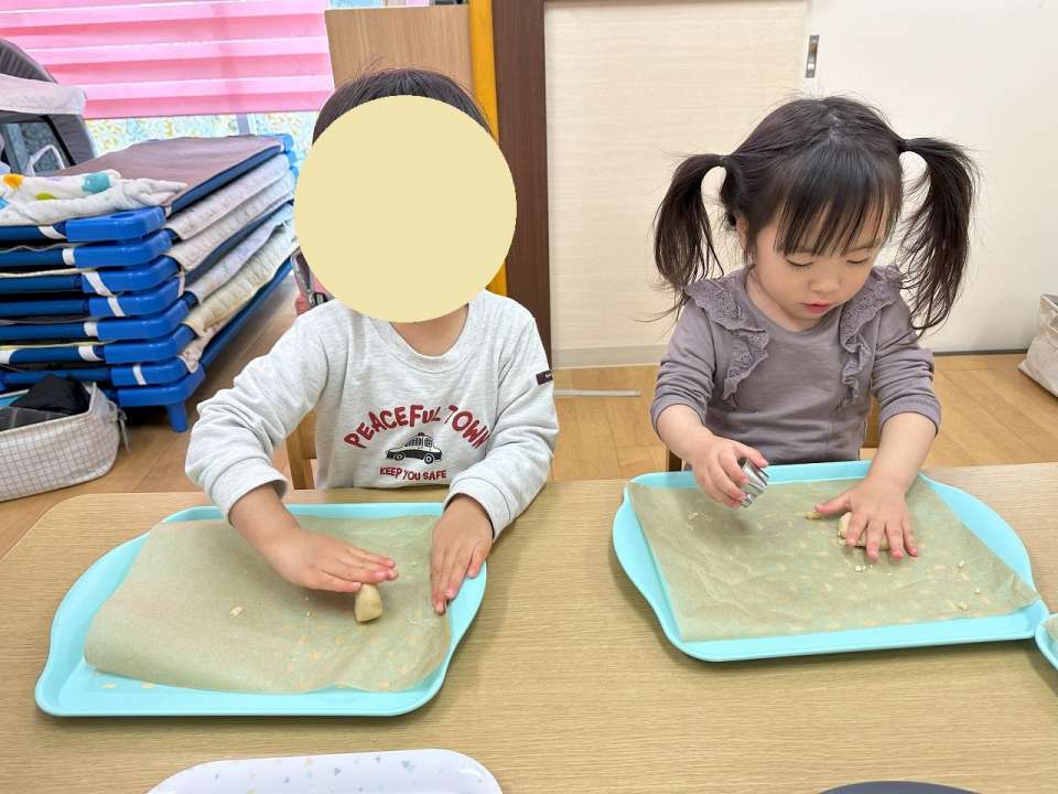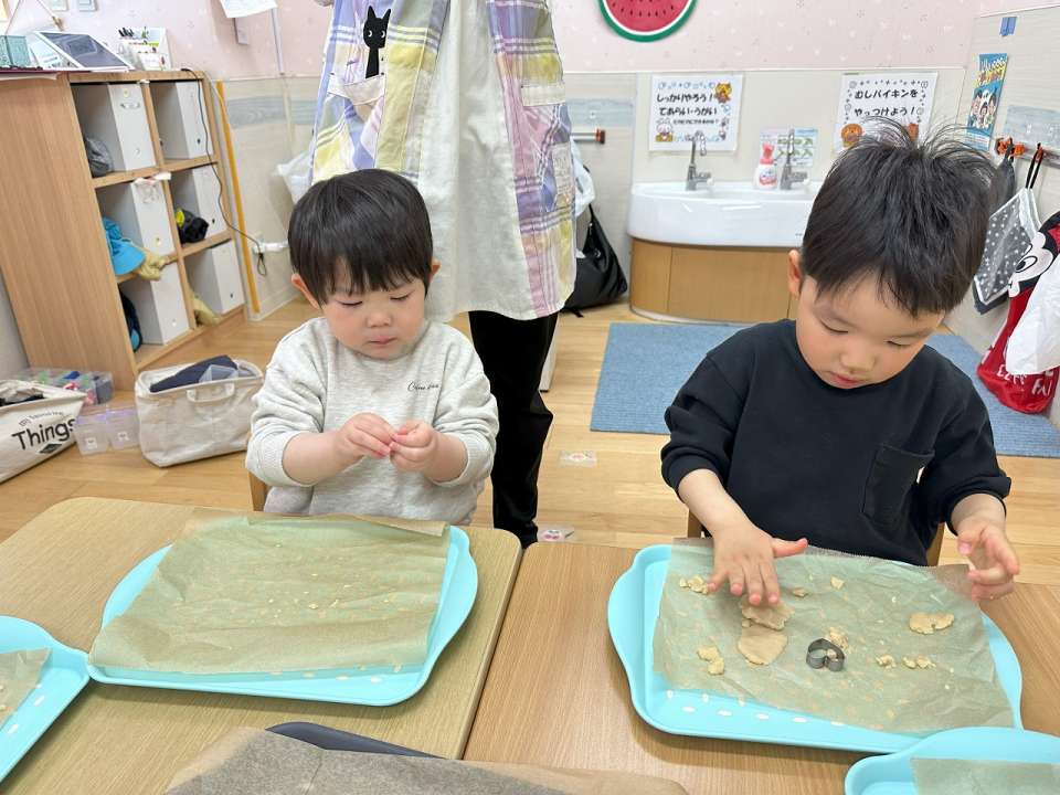 3月、卒園の思い出作りに2歳児クラスのお友だちがクッキーづくりをしました。