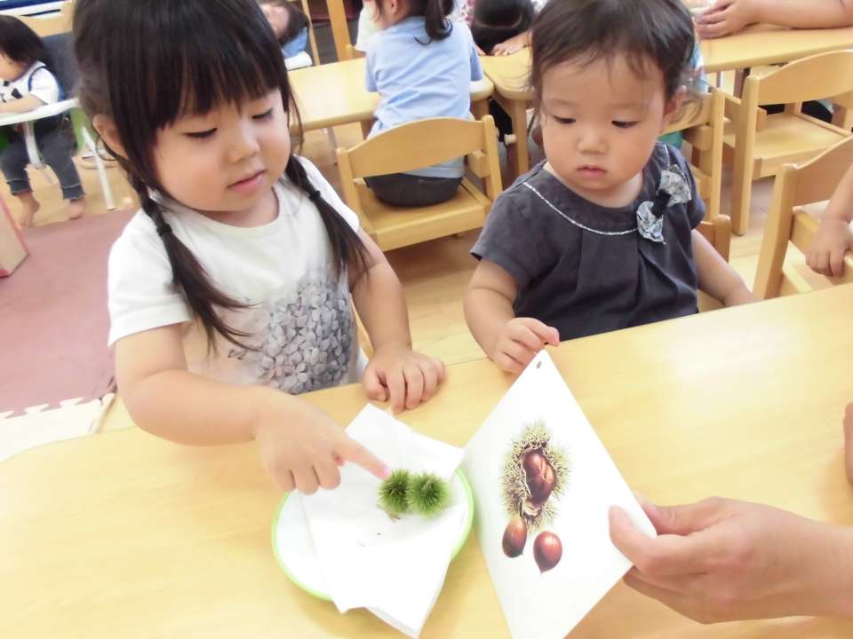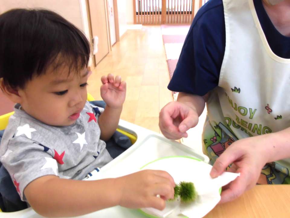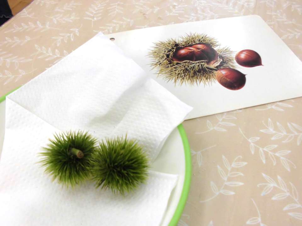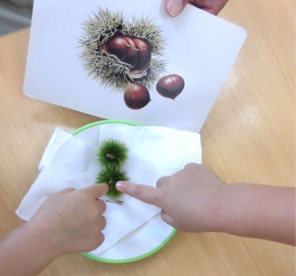 おおきなくりのイガと違って、まだやわらかくてちょっとチクチクするくらいでした。
