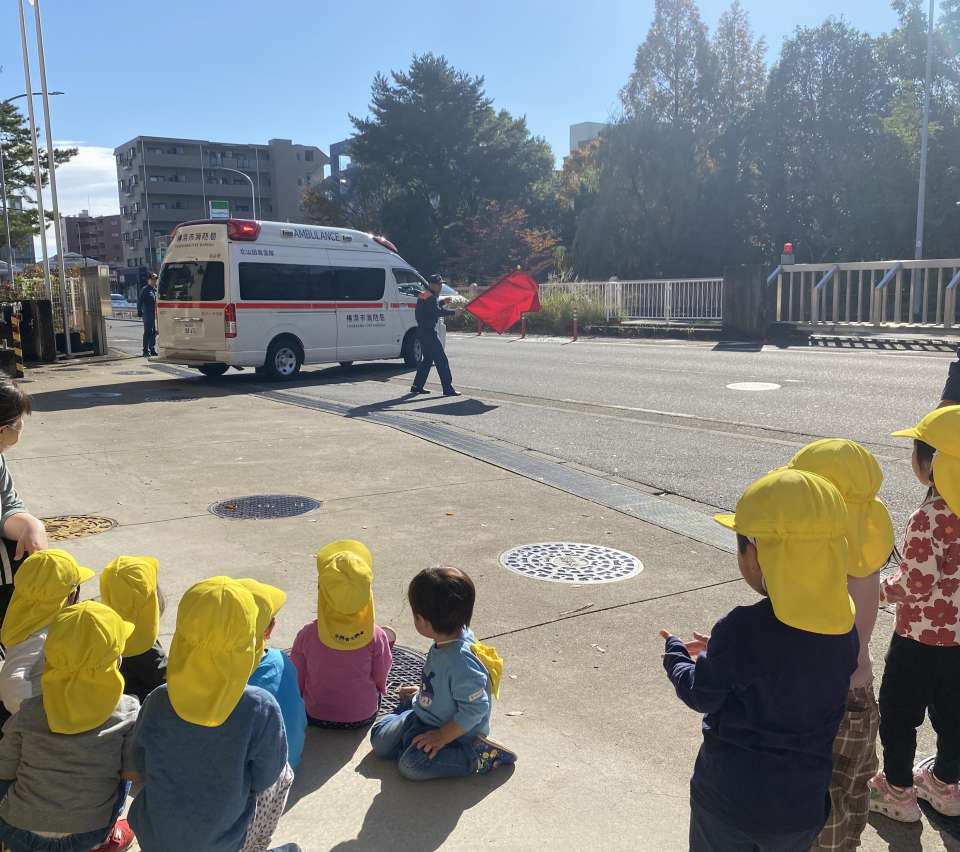 救急車の出動に子どもたちは「がんばってねー」と手を振っていました。
