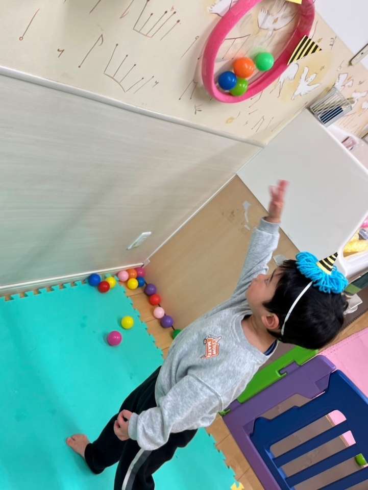 丸の中にボールを投げるのって難しい!みんな夢中で遊びました