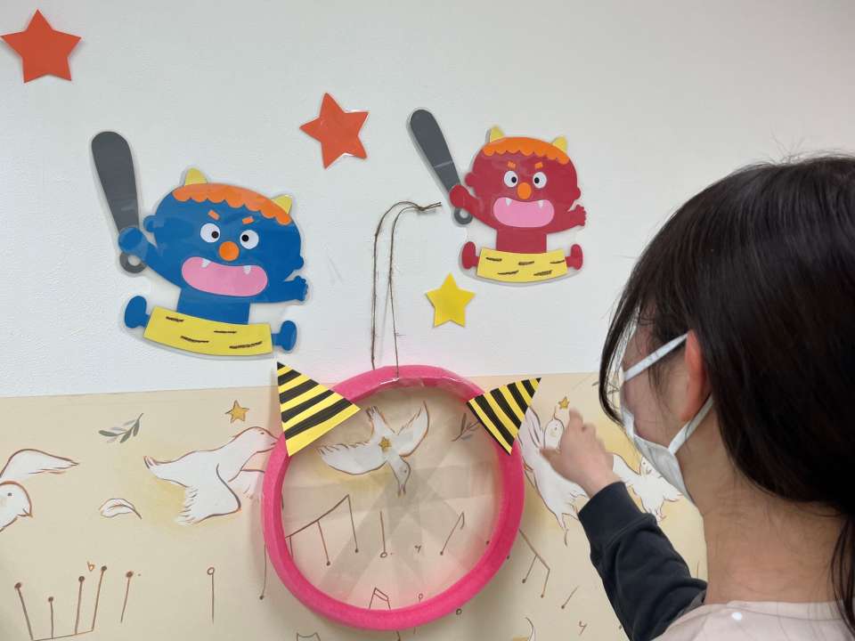 この日の保育室では朝からとっても可愛い鬼さんたちが遊んでいました。