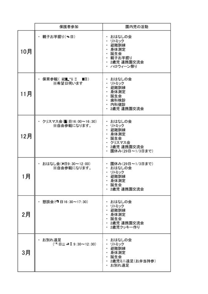 ご意見を受けて、今年度は親御さんに保育園でのお子さんの様子を見て頂く機会を増やすことにいたしました。