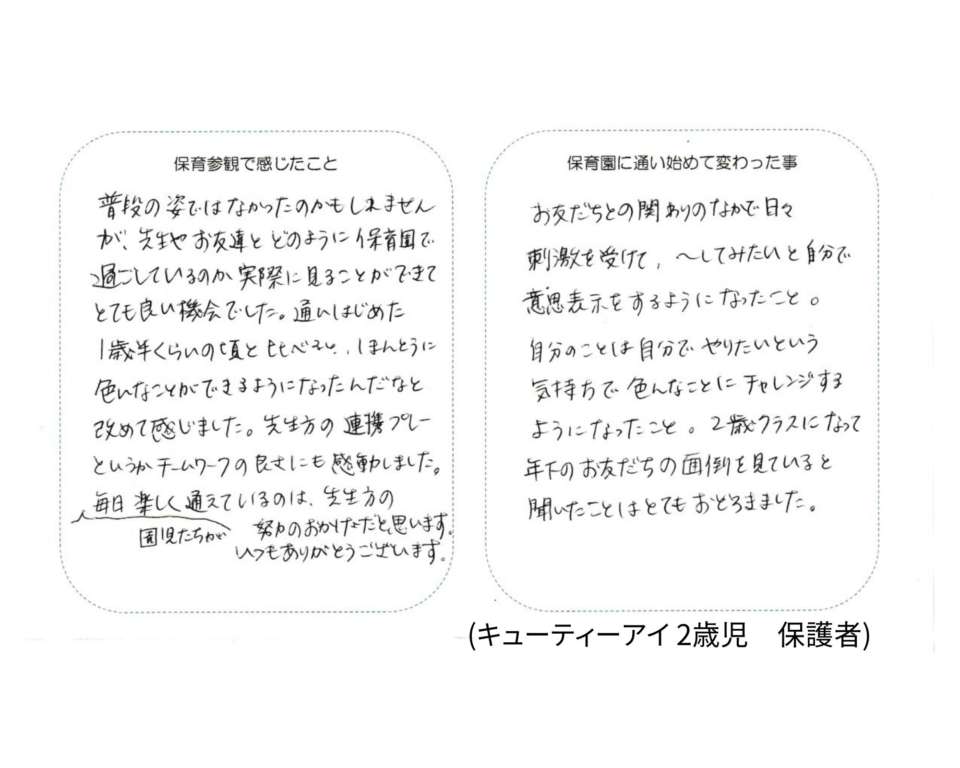 キューティーアイ2歳児 保護者さま 2022年12月11日 最終更新日時 : 2025年12月20日 admin 一緒に働くみなさんを募集しています 面接前の見学大歓迎です 保育ルームキューティーでは、一緒に働く保育士・栄養士・調理員・看護師・准看護師の方を募集しています。扶養内で働きたい、週4日以内で働きたい、これから保育士を目指しているなどのご要望もご相談ください。 採用情報はこちら