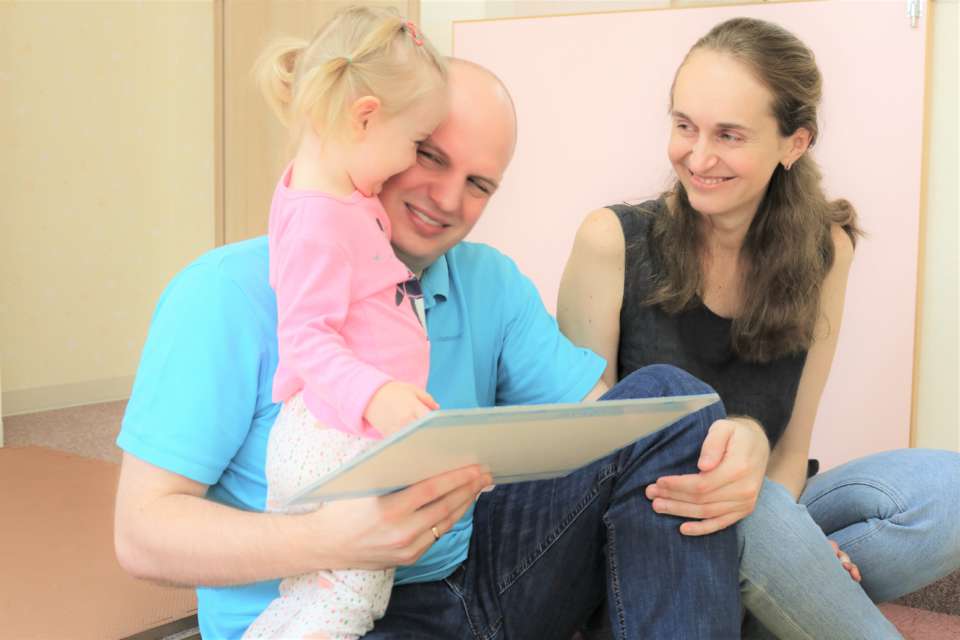 ご両親はヨーロッパから日本にいらしていて、パパのクリスチャンさんはドイツのご出身、ママのアナスタシアさんはロシアのご出身です。とっても可愛い娘さんはソフィーちゃん(2歳)です。